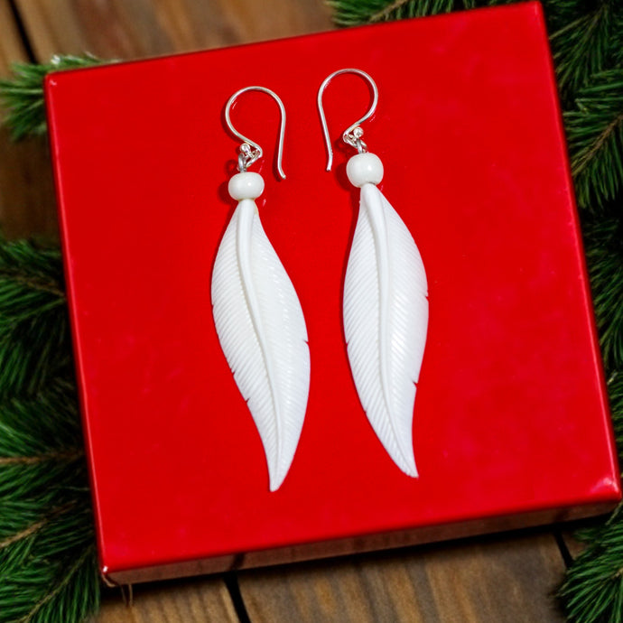 Our hand-carved earrings are hooked with high-quality, sterling silver.