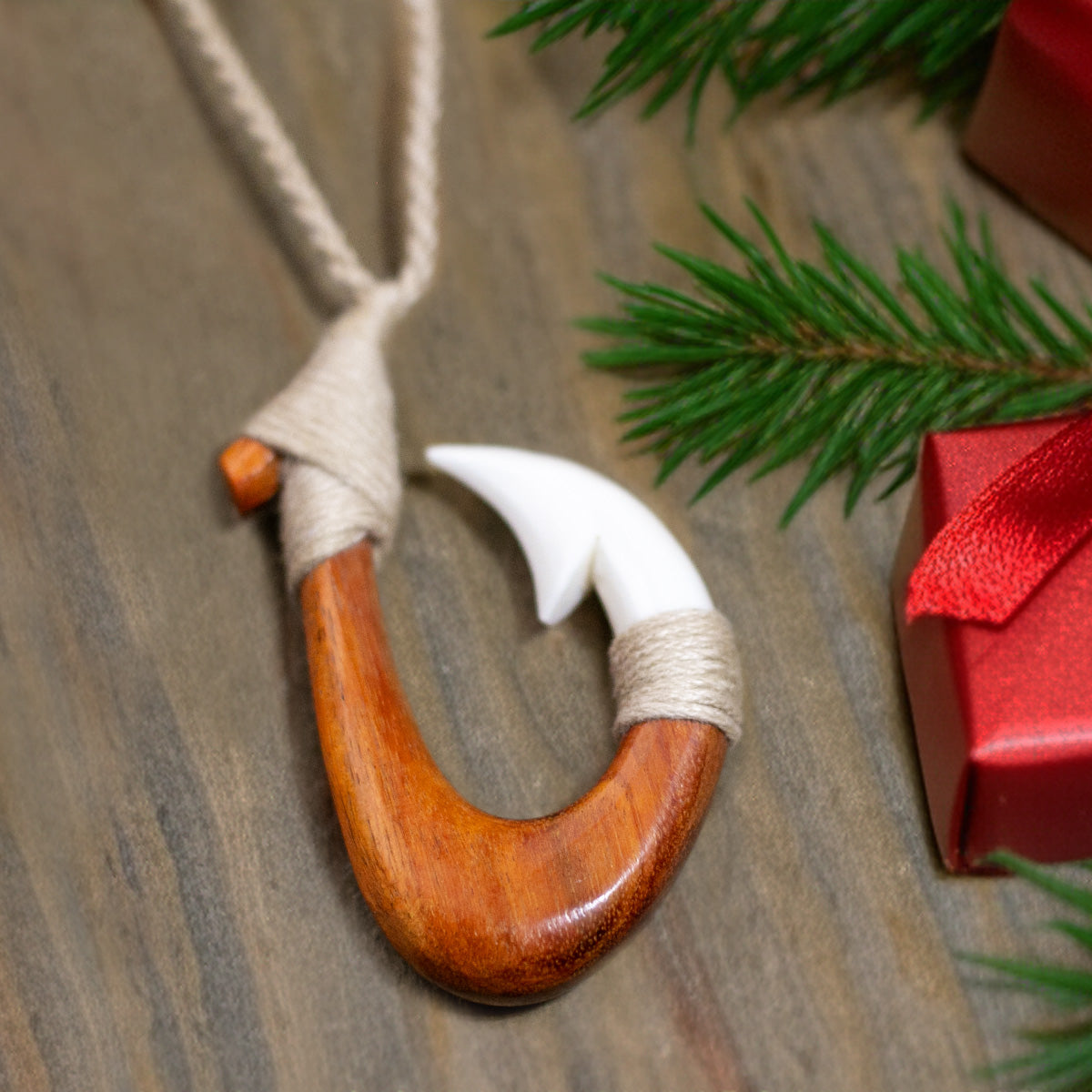 Similar to the traditional fish hook, the Red Wood Combo Hook represents love for the ocean and safe passage over water. It also brings the reminder that differences can make something beautiful.